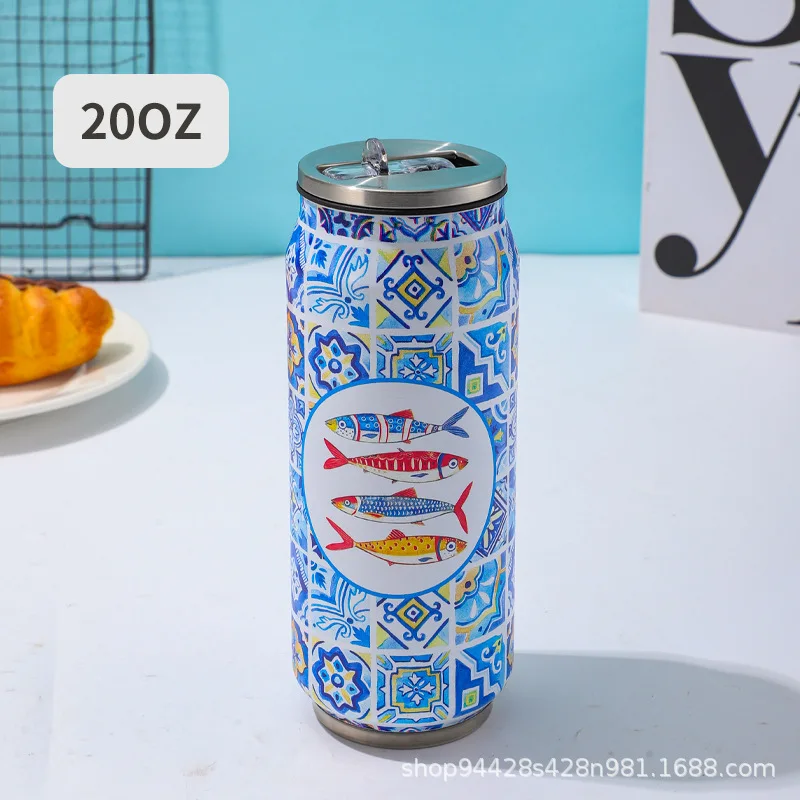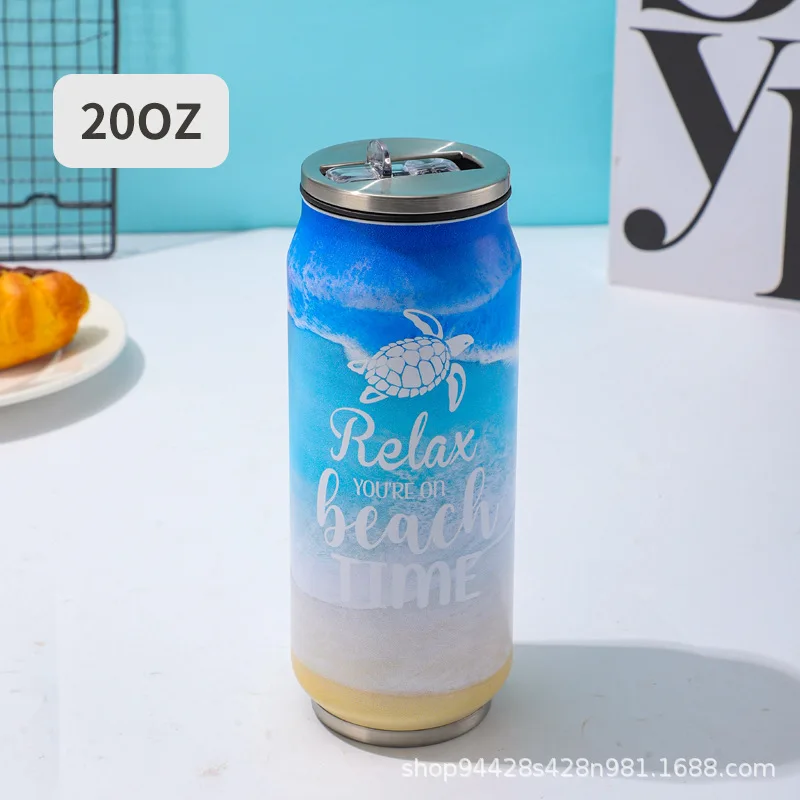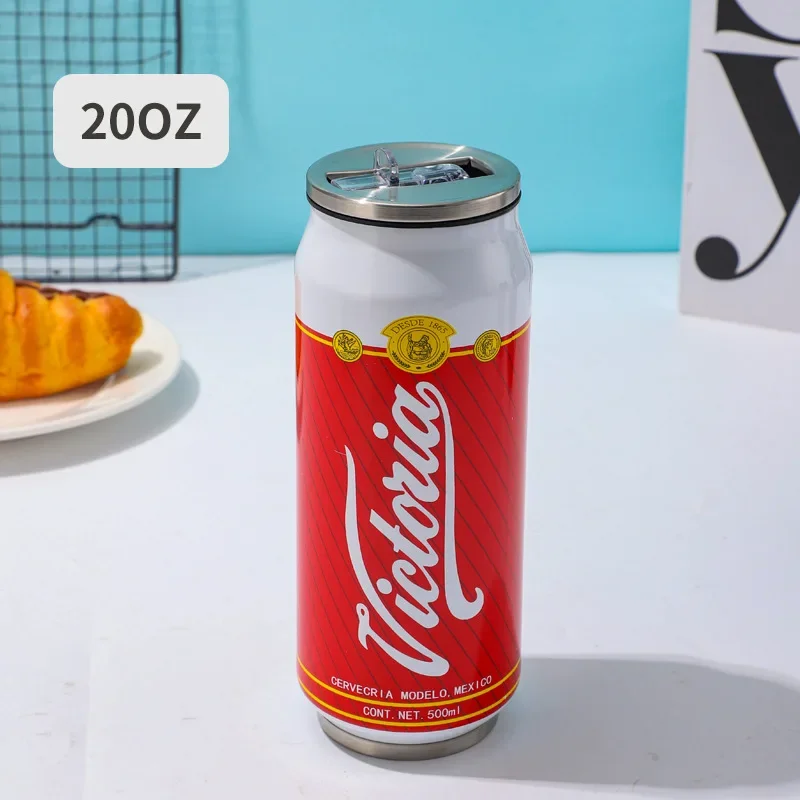 1 pc 500ML Thermos with Straw 304 Stainless Steel Beer Bottle Cola Can Termos Para Cafe Beer Cold Keeper Home Kitchen Drinkware