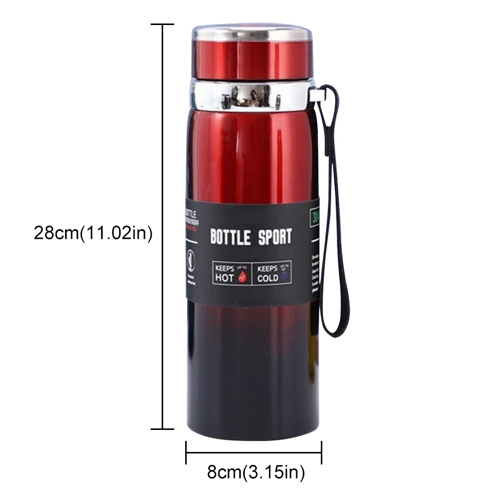 1000ml Insulated Thermal Bottle with Handle Vacuum Double Insulation Cup Large Capacity Outdoor Vacuum Flask for Hot Cold Drinks Features: 1. Premium Stainless Steel: Crafted from high-quality stainless steel, our thermal water bottle is corrosion-resistant and odorless, ensuring your drinks remain pure and safe. 2. Vacuum Insulation: With a double-wall vacuum design, this insulated thermal bottle maintains your hot beverages steaming and your cold drinks chilled for hours, providing you with lasting refreshment. 3. Smooth Drinking Edge: The vacuum double insulation cup features a polished, smooth rim, offering a comfortable drinking experience without irritating your mouth. 4. Versatile Use: Whether you’re out for a hike, traveling, or at the office, this portable sports bottle is the perfect companion for keeping your drinks at the right temperature in a variety of settings. 5. Convenient Handle: Equipped with a sturdy handle, our outdoor vacuum flask is easy to carry, making it an ideal choice for on-the-go hydration. Specification: Origin: Mainland China Main Material: Stainless Steel Capacity: 1000ml Color: Gradient Red, Gradient Blue, Silver, Black Size: About 28cm (11.02in)*8cm (3.15in)*8cm (3.15in) Net Weight: About 380g Note: Due to the different monitor and light effect, the actual color of the item might be slightly different from the color showed on the pictures. Thank you! Please allow 1-2cm measuring deviation due to manual measurement. |
