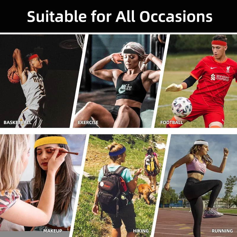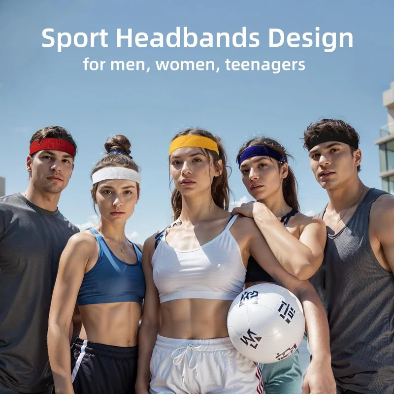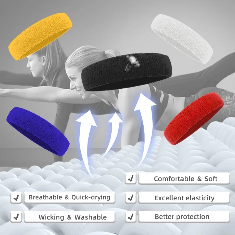 2pcs Sports Sweatbands Headband Moisture Wicking Hairband Athletic Towel Headbands Cotton Head Sweat Bands for Running Cycling