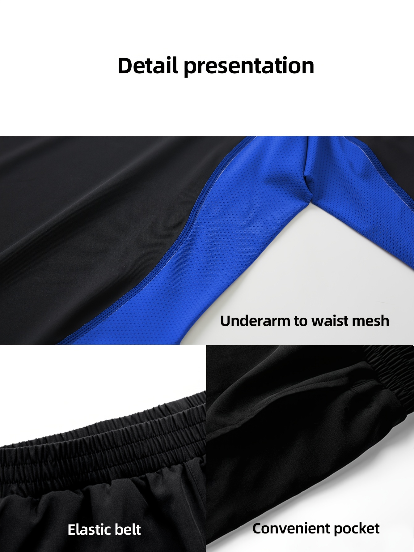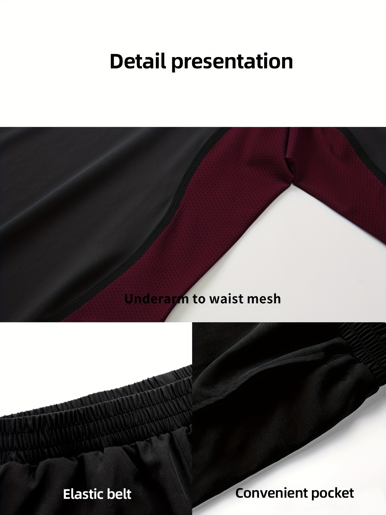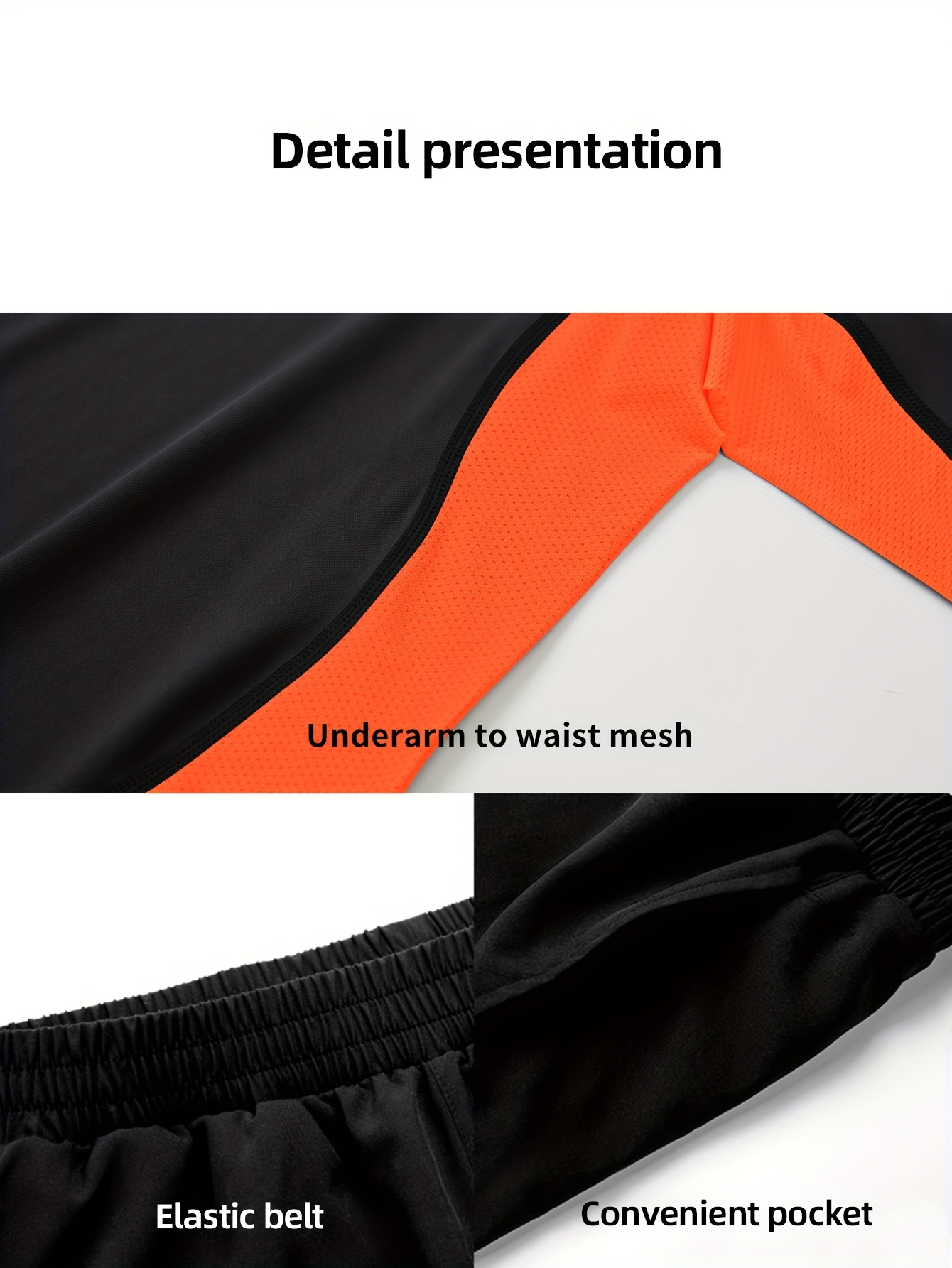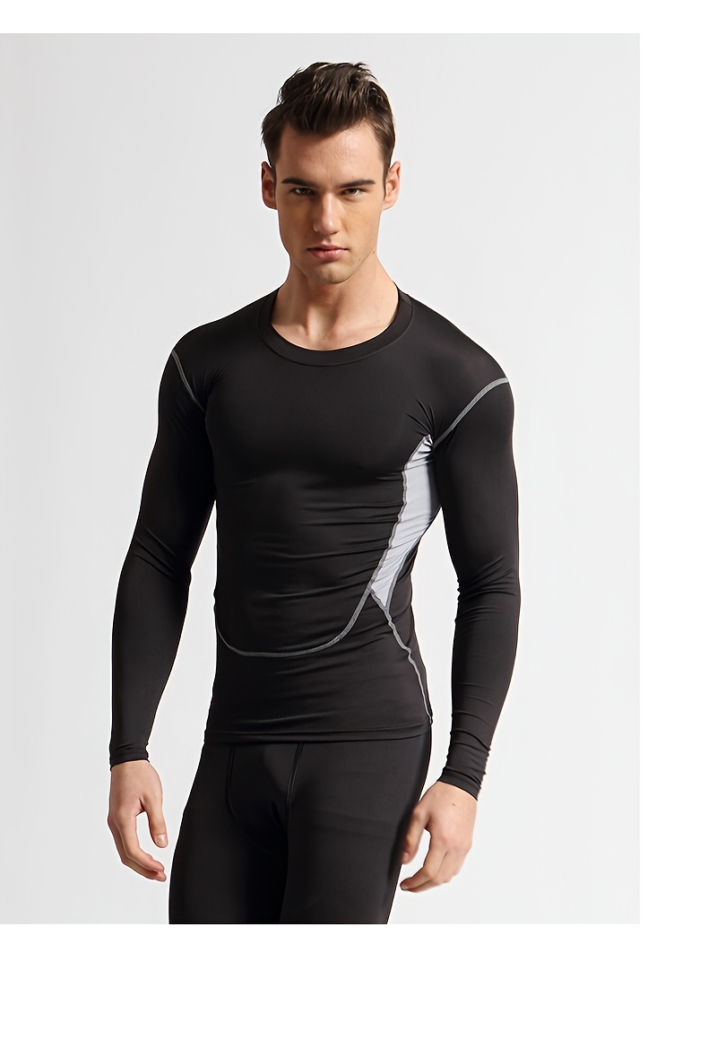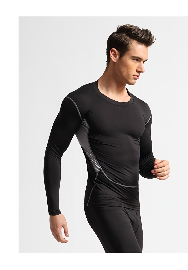 3pcs Men’S Athletic Workout Set – Breathable Mesh Long Sleeve & Leggings with Contrast Color Block, High-Stretch Gym & Running Outfit for Basketball, Training, Hiking – All-season Fitness Apparel, Workout Clothes, Basketball Gear