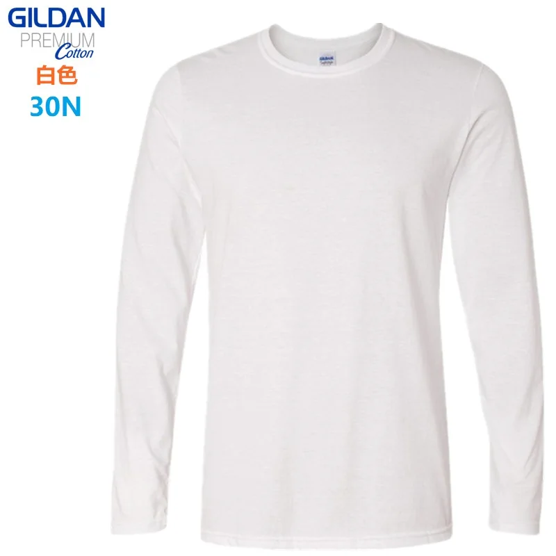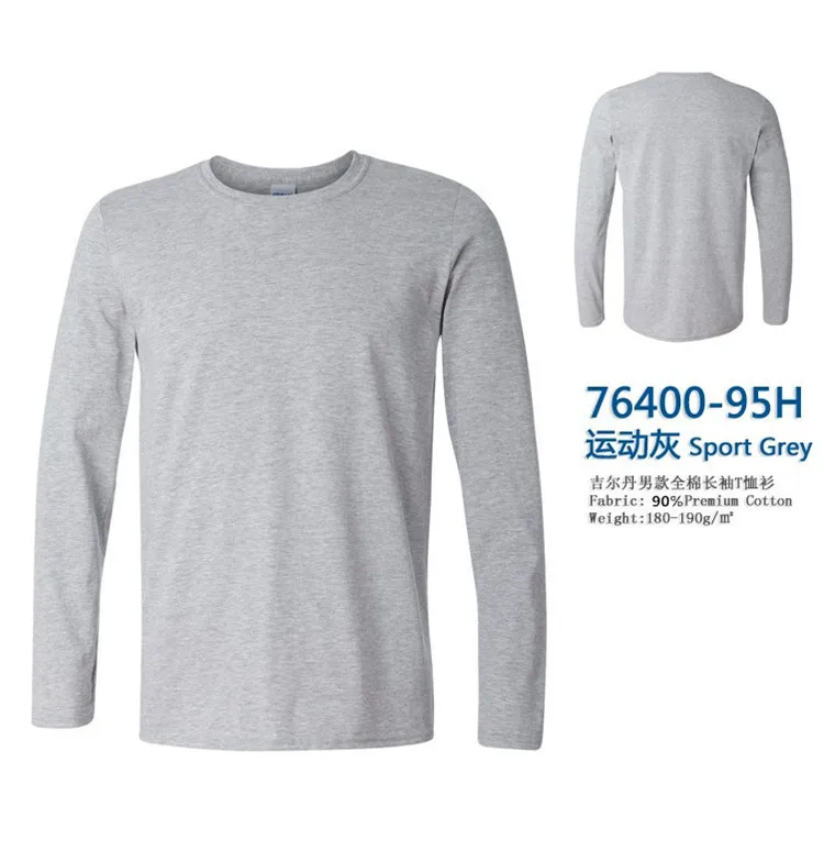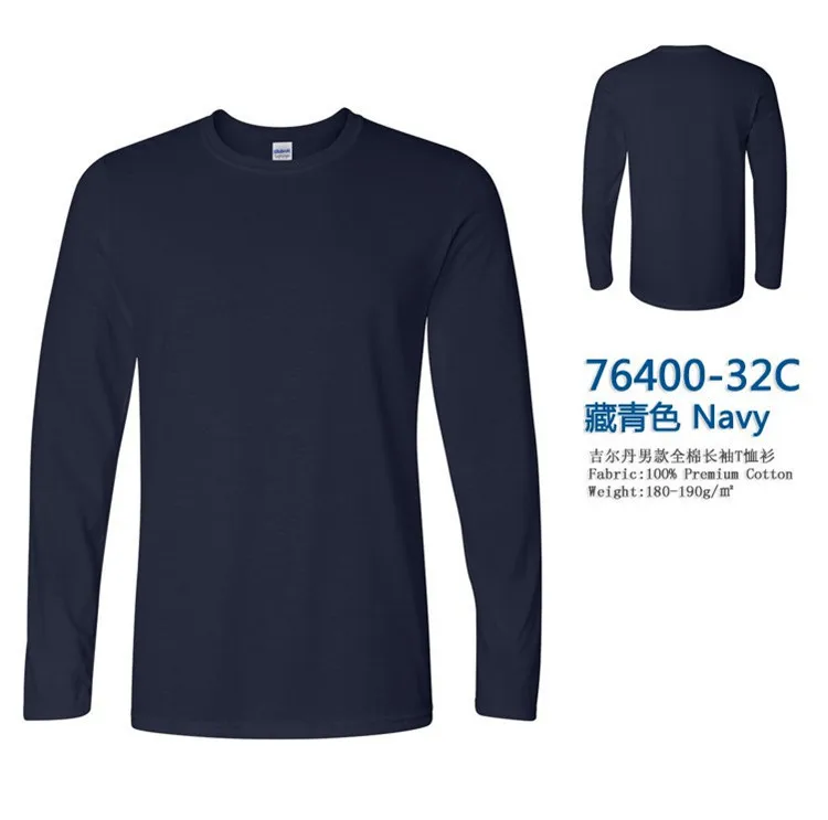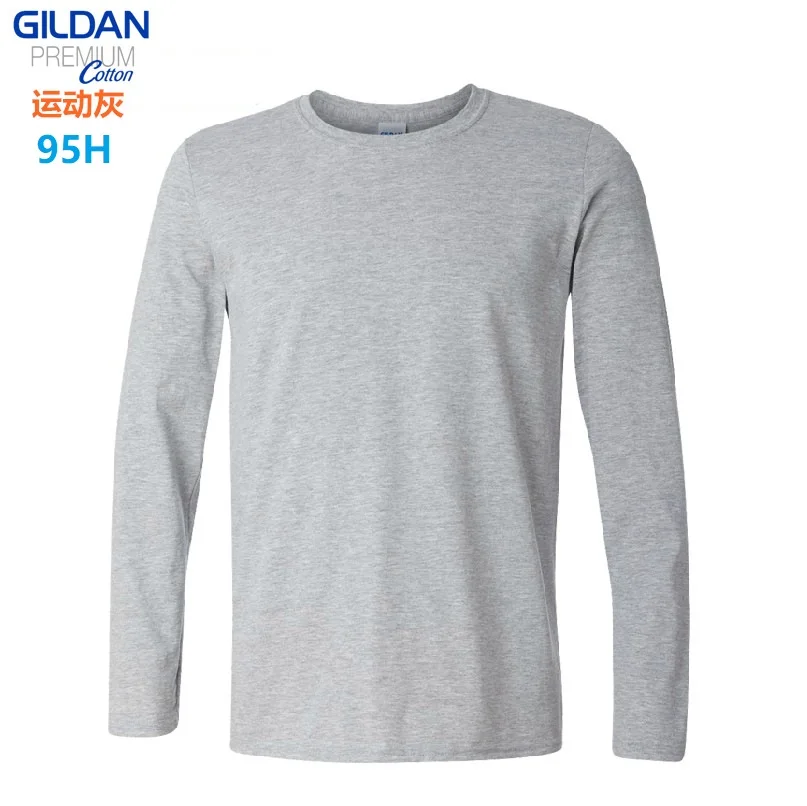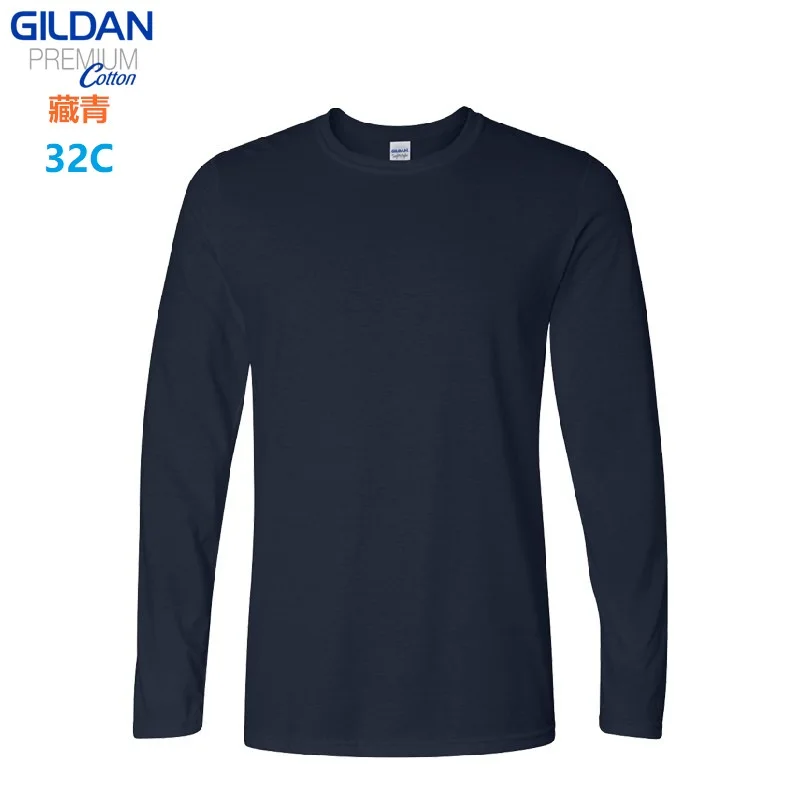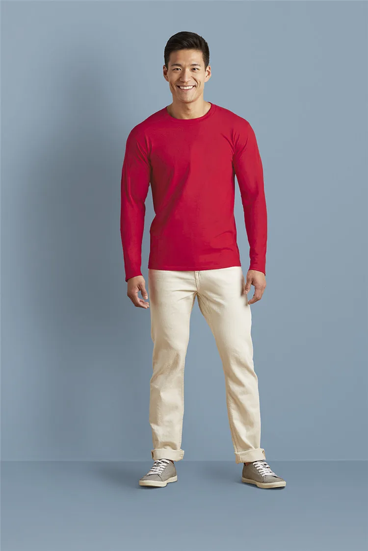GILDAN 76400 Men 100% Cotton T-shirts Solid Long Sleeve O-Neck T Shirt Mens Tops Tees Basic Winter Autumn TShirts Male