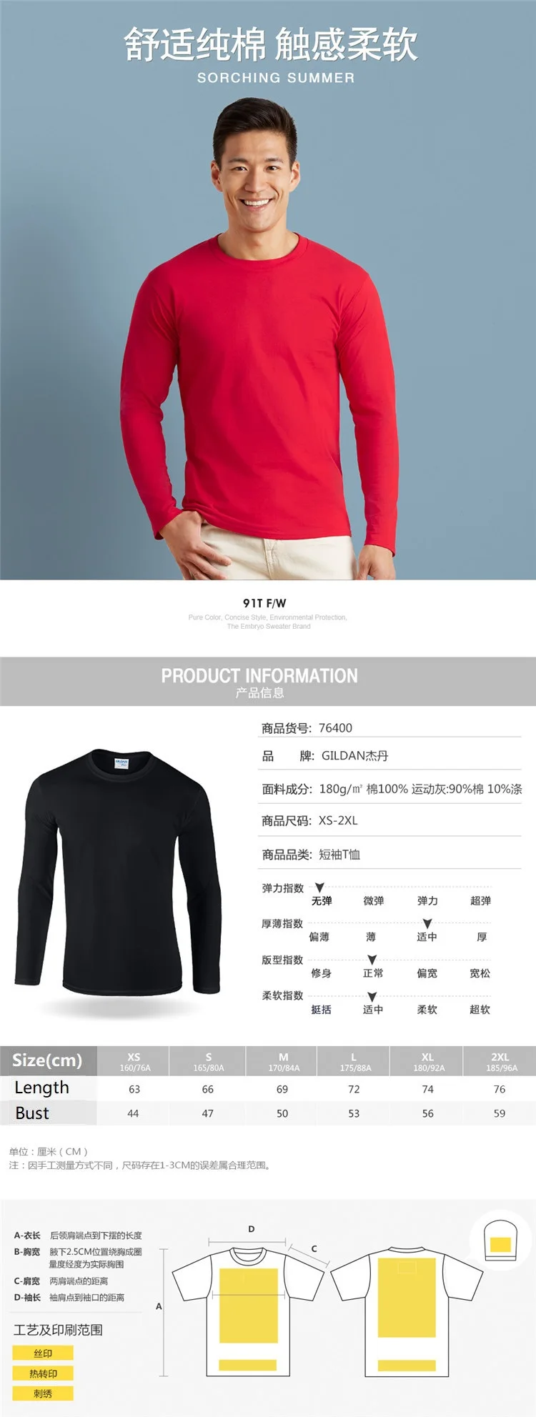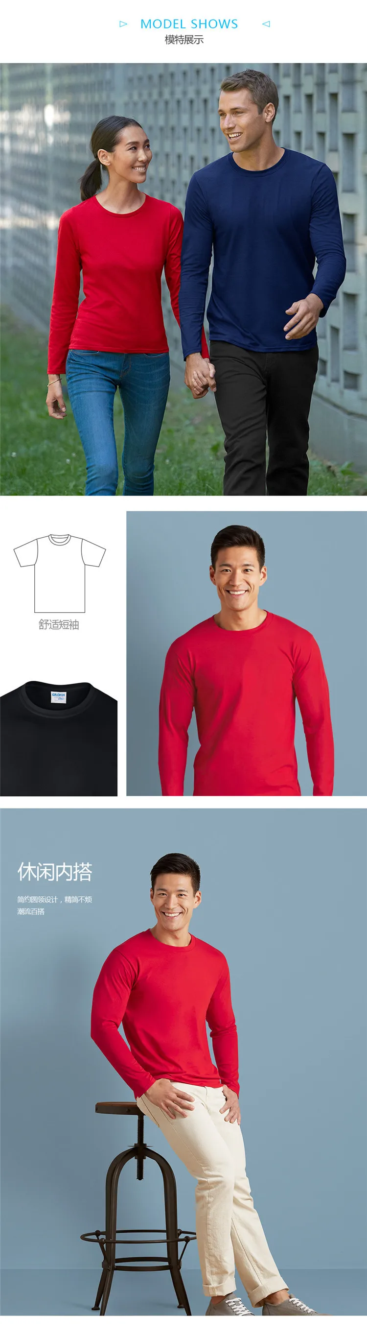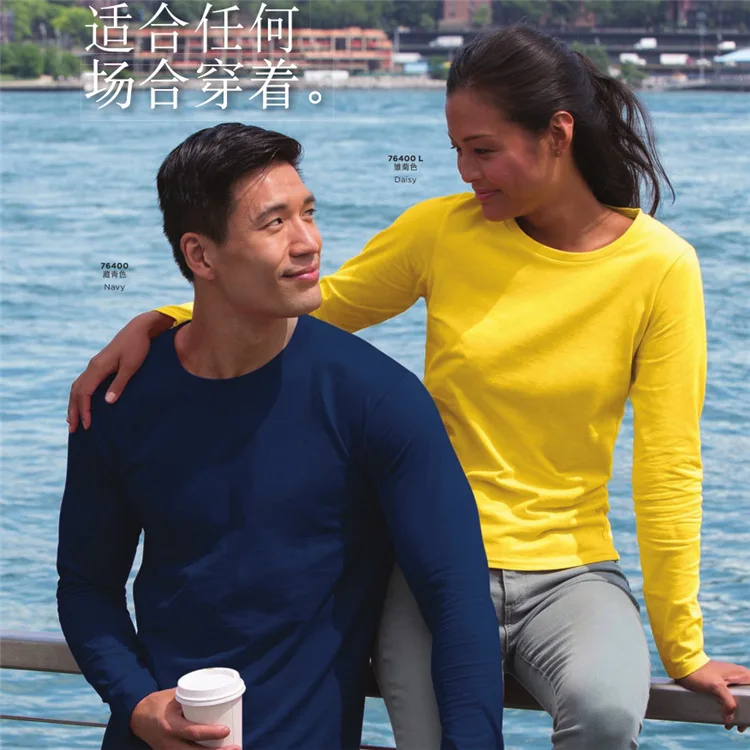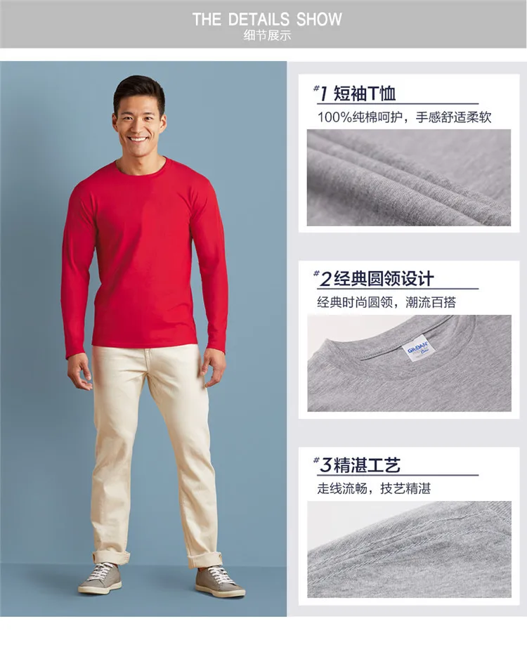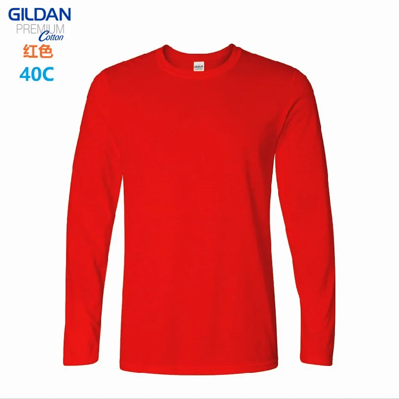 GILDAN 76400 Men 100% Cotton T-shirts Solid Long Sleeve O-Neck T Shirt Mens Tops Tees Basic Winter Autumn TShirts Male