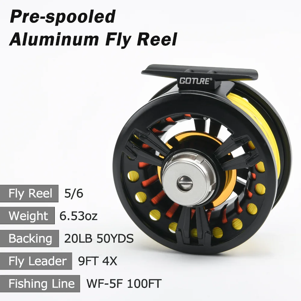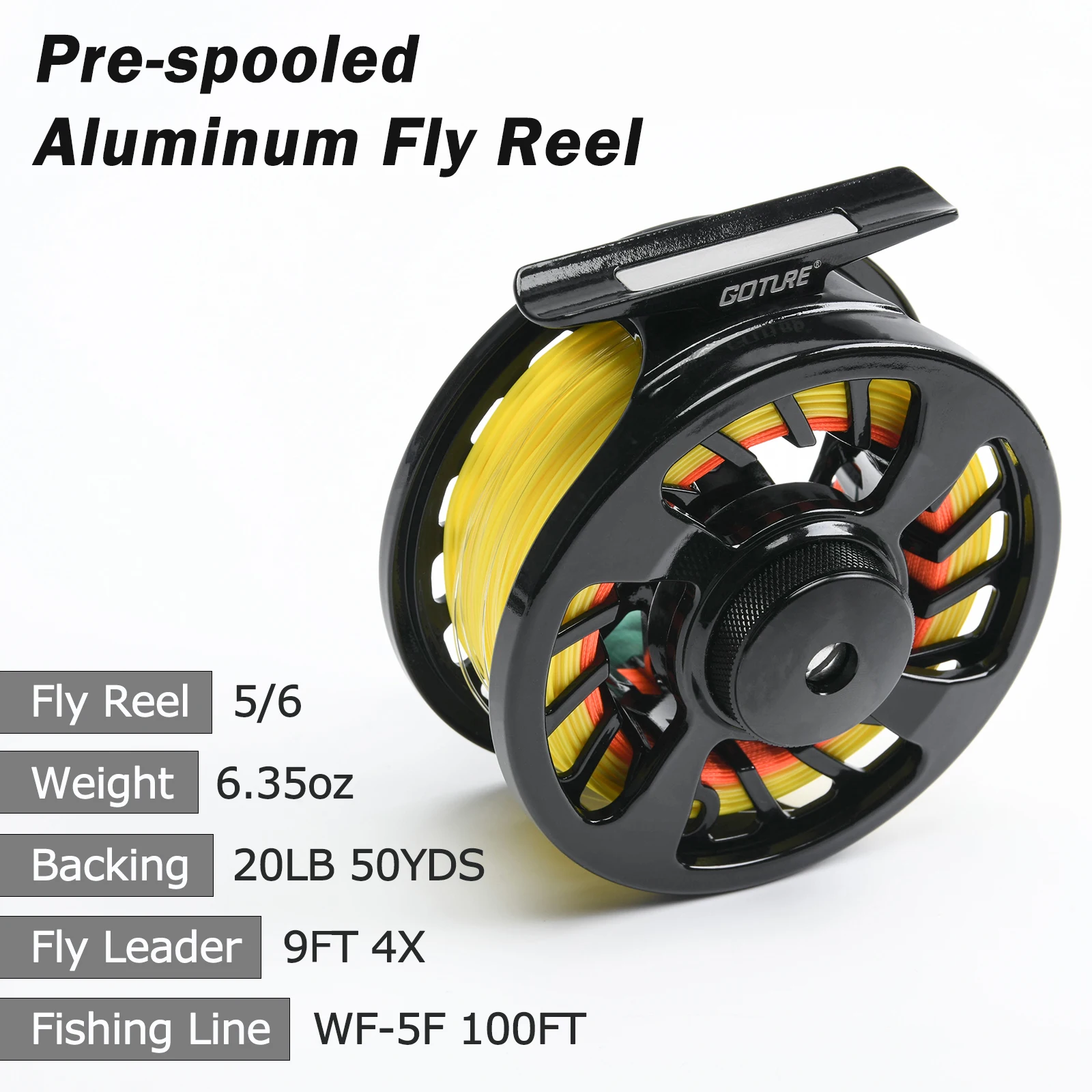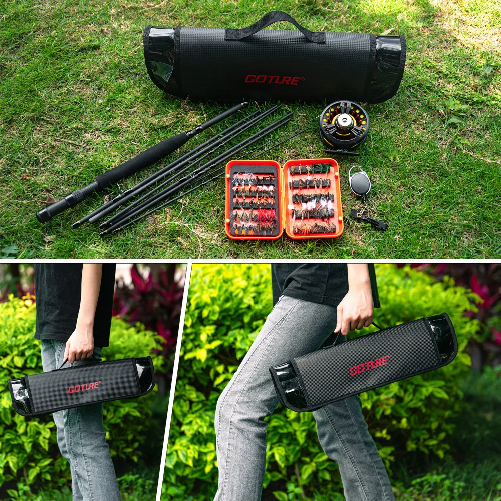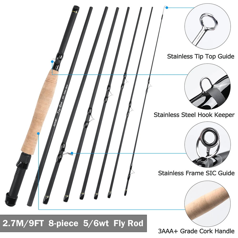 Goture 2.7m/9FT Fly Fishing Rod Set 5/6WT 8pcs Carbon Fiber Fly Rod Combo Portable Travel Feeder with Reel Fishing Tackle Bag