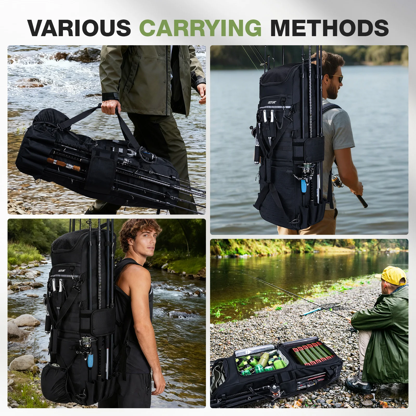 Goture 3layer 116L Large Fishing Rod Tackle Bag 99*47*28cm Multi Pocket 600D Oxford with insulation Layer Hunting Camping Bag