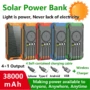 【Long-Lasting and 2 Input Models】38000mAh large capacity could charge your devices several times. 2 Input Models ensure your power bank always have electricity. When you are at home, you can charge your power bank through cables. When you are in outdoor, you can charge you power bank through sunshine.