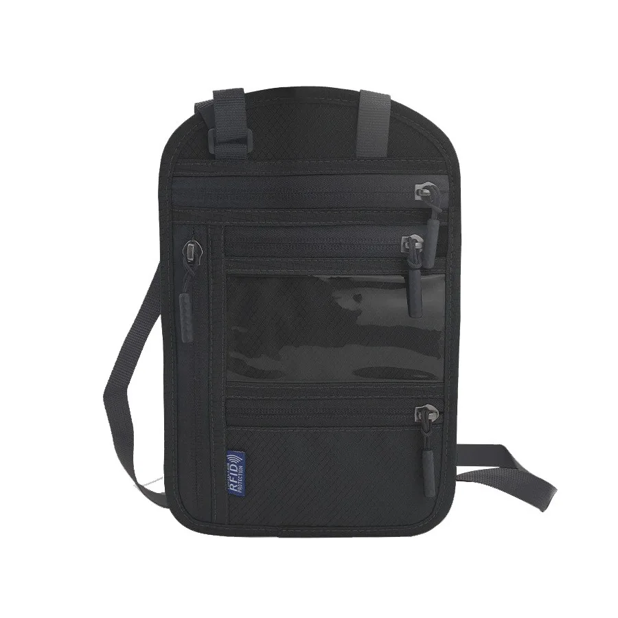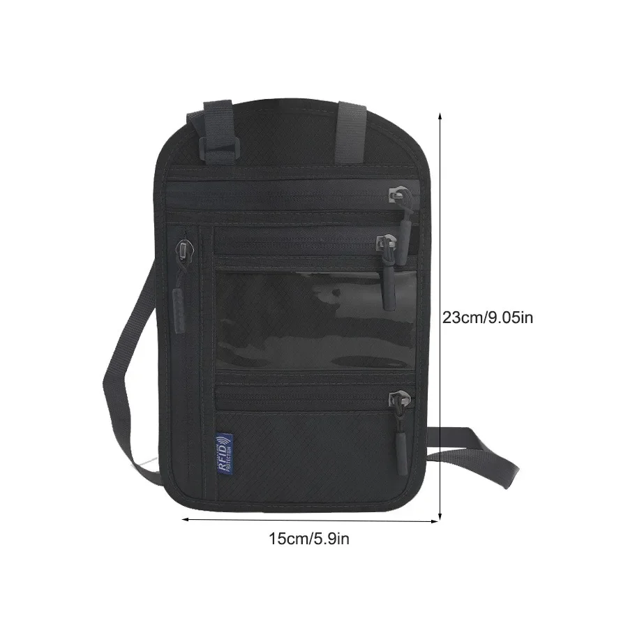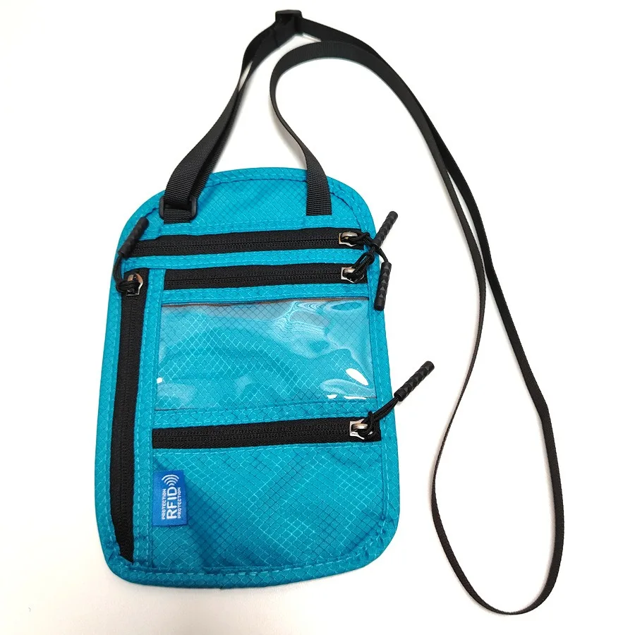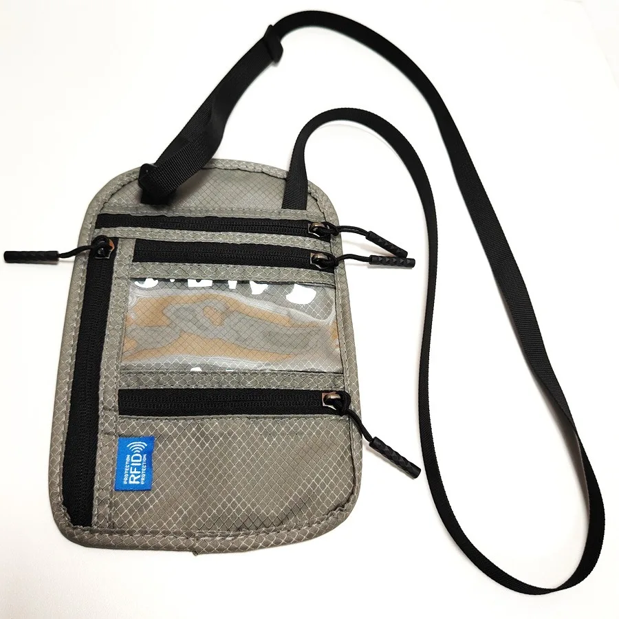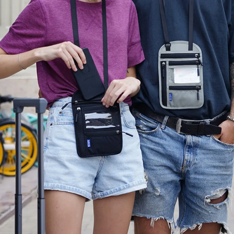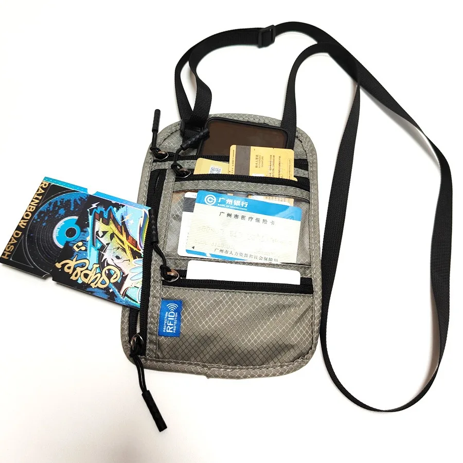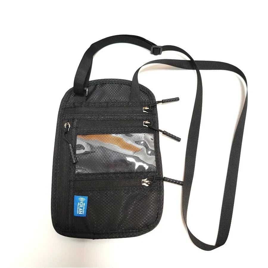 RFID Blocking RFID Passport Bag Multi-Pockets Anti-theft Passport Document Bag with Adjustable Neck Strap Waterproof