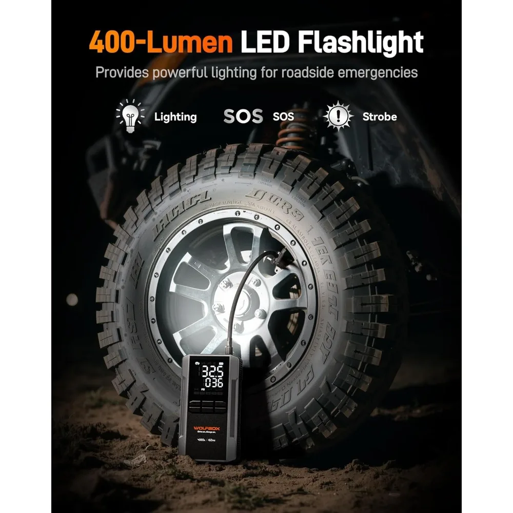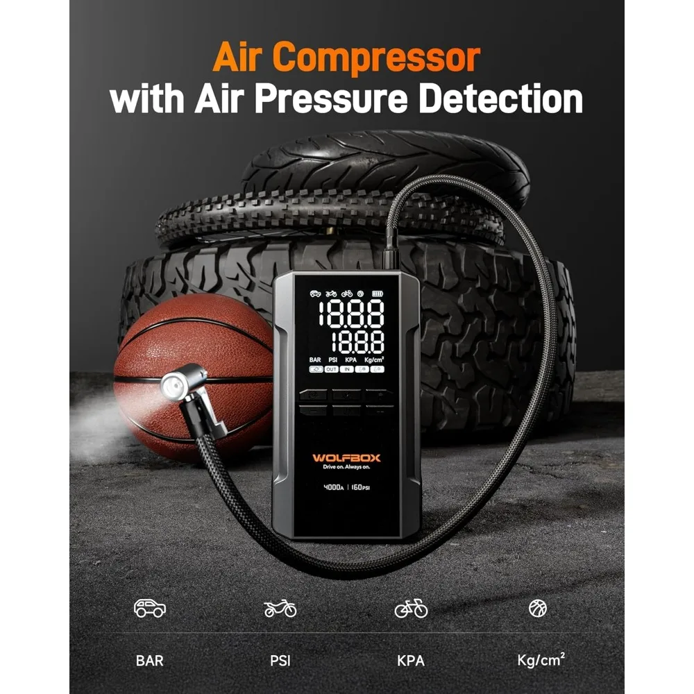 WOLFBOX 4000A Jump Starter with 160PSI Air Compressor, 12V Car Battery Booster, 65W Fast Charge, 24000mAh Portable Tire Inflator